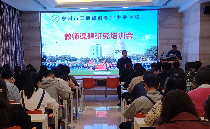 教育改革的步伐在加快,课题研究工作的重要性日益突出,但是课题研究对于很多老师来说是新事物,从事课题研究,在经验或理解上都有欠缺。为了解决老师们对于课题申报和课题研究工作中的困扰,学校组织全体教师开展了一次课题研究培训会,由高级教师肖建辉(福建省学科教学带头人)主讲。