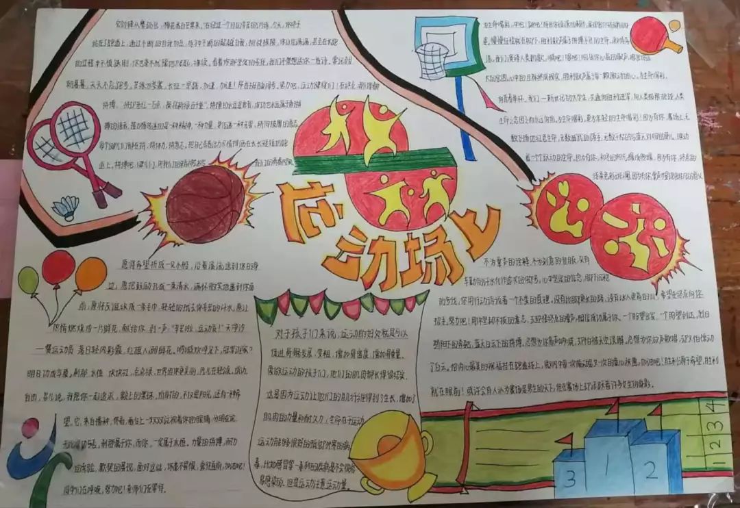 每一块黑板都是学生心灵的窗户。当她们拿起一支画笔,小脑袋开始认真思考的时候,世界的模样就开始变化了。四个板报,四种睿智,每一笔竖与捺,每一方图与文,都是他们智慧的结晶,都是他们灵巧心思的体现。校运会黑板报与手抄报正是体现同学们在运动场上挥洒汗水的最美见证。