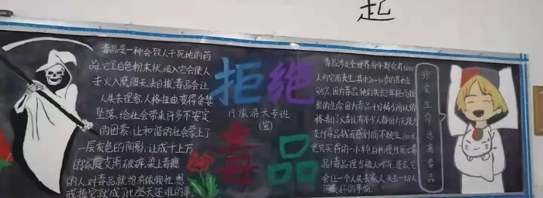 青少年是我们的未来和希望,让他们认清毒品危害,增强他们抵御毒品的免疫力,净化他们的成长环境,是学校当前和长期的重要工作。为了进一步加强学校毒品预防教育工作,增强学生的禁毒意识及自觉抵制毒品侵袭的能力,近期我校开展了以“禁毒”为主题的黑板报及手抄报评比活动,这也是学校开展预防毒品宣传教育活动之一。