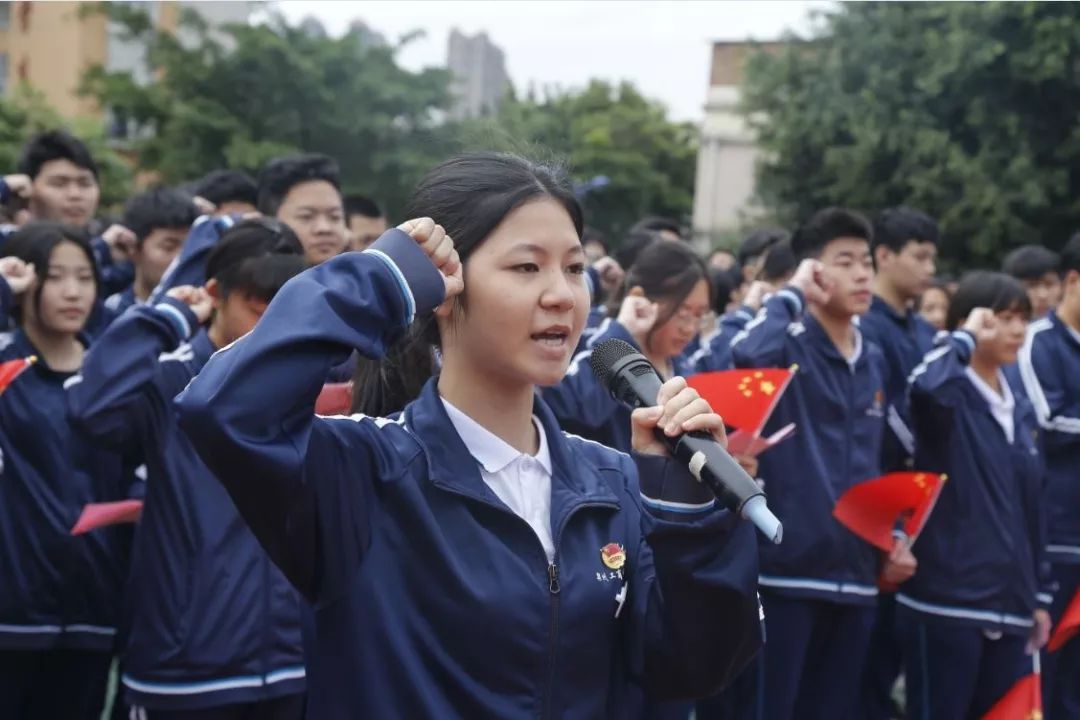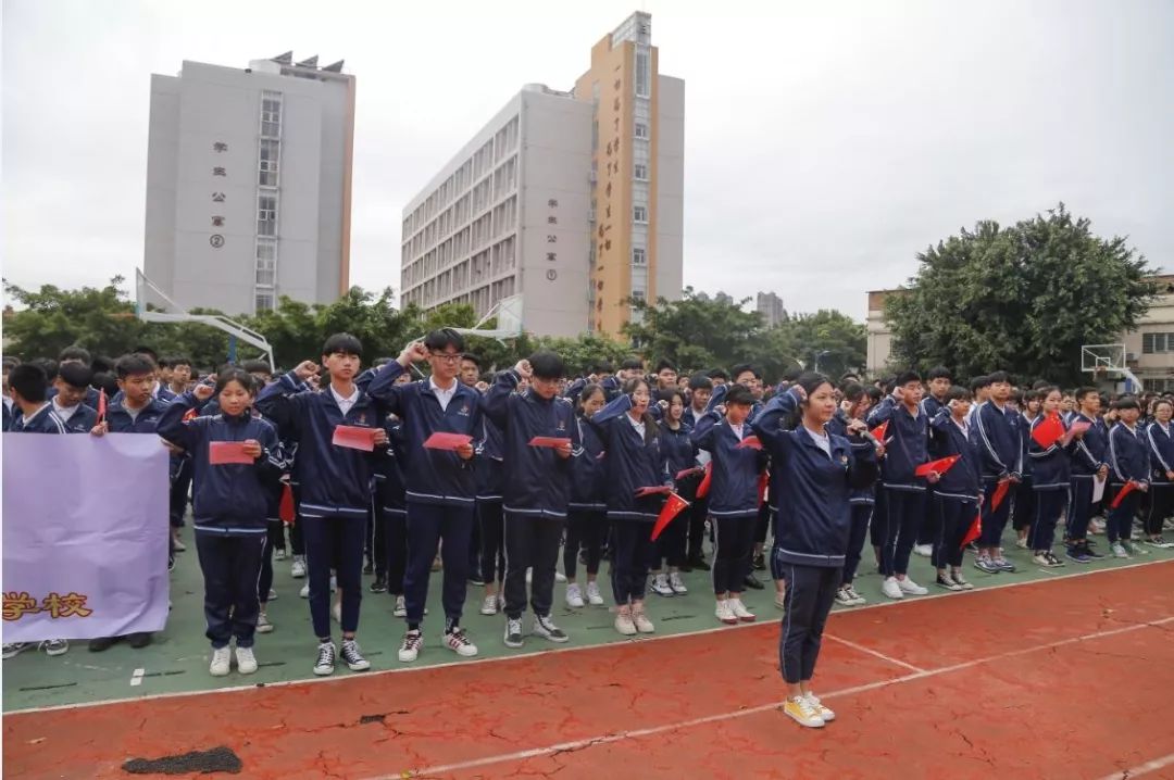 在宣誓仪式上,泉州工商旅游学校103名新团员胸佩闪亮的团徽,面对鲜艳的团旗,庄严宣誓,以自己最洪亮的声音宣读入团誓词,展现了作为作为中国共产主义青年团一员的光荣感和责任感。