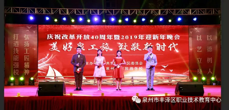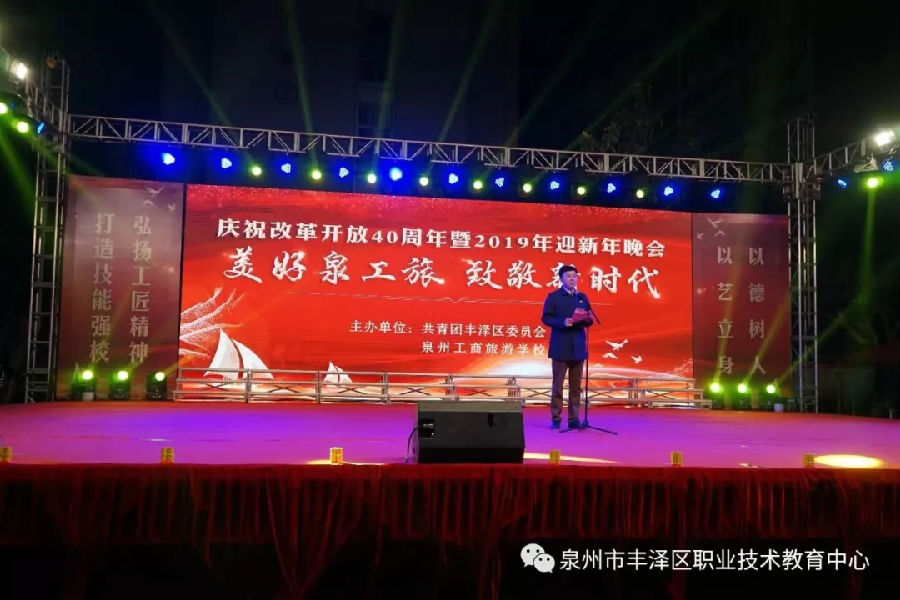 美好泉工旅,致敬新时代。12月28日晚上,泉州工商旅游学校隆重举行庆祝改革开放40周年暨2019年迎新晚会。来自共青团丰泽区委员会、泉州剑桥幼教机构等联办单位的领导和嘉宾及部分家长朋友们、毕业生代表们和全校师生欢聚一堂,共同见证了这一美好时刻。