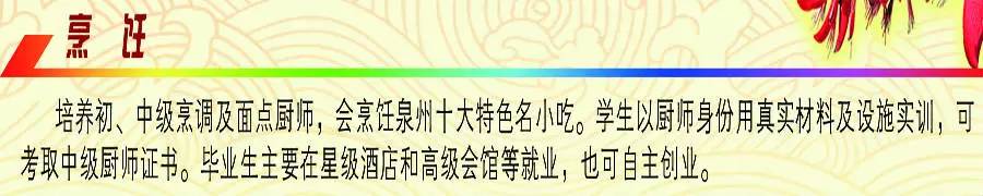 泉州工商旅游学校创办于1992年,是省部级重点职业中专学校,是泉州市技能型紧缺人才培养基地,是丰泽区唯一一所公办职业中专学校。学校座落于丰泽区城东街道霞美社区,校园占地近60亩,在编教职工48人,外聘兼职教师54人,在校生1204人。2016年开设旅游管理、高铁动车乘务、烹饪、学前教育、电子商务、会计电算化、建筑工程造价、汽车美容等8个专业,今年5月招收应届初三保送生700多人到校参加为期1个月的入学前适应性训练。