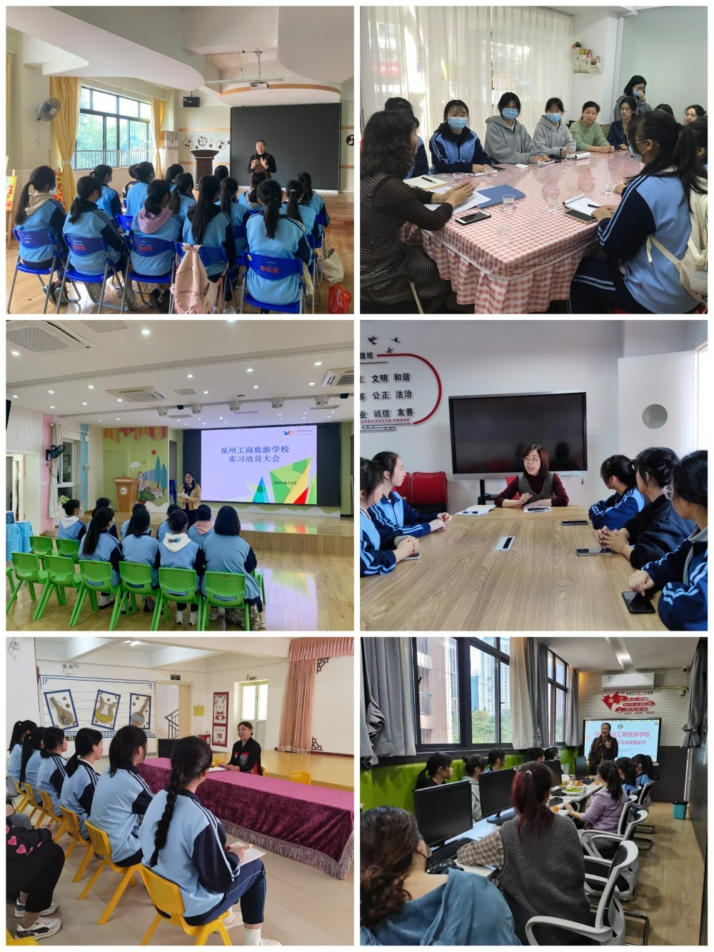 2021年11月29日,泉州市工商旅游学校学前教育专业科召开了2019级学前教育专业实习动员大会。学校政教处主任、学前教育科科长骆子镇,副科长庄燕玲、张龙辉及学前教育专业科全体教师参加了会议。会议由学前教育副科长张龙辉主持。
