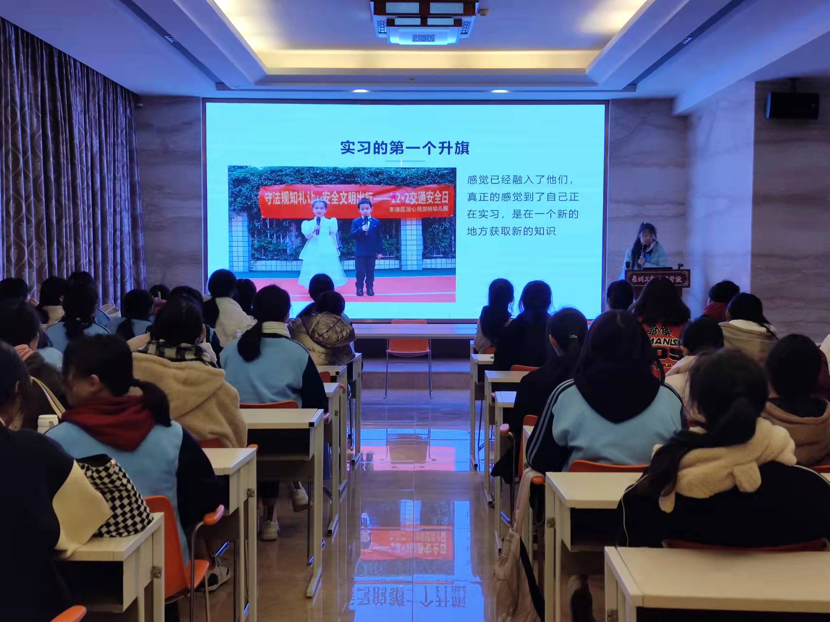 此次实习汇报大会是对2019级学前教育实习成果的一次检验,也是给在校生传授丰富经验和提出宝贵建议,更是对进一步提高教学质量、确定教学重点具有重要意义。