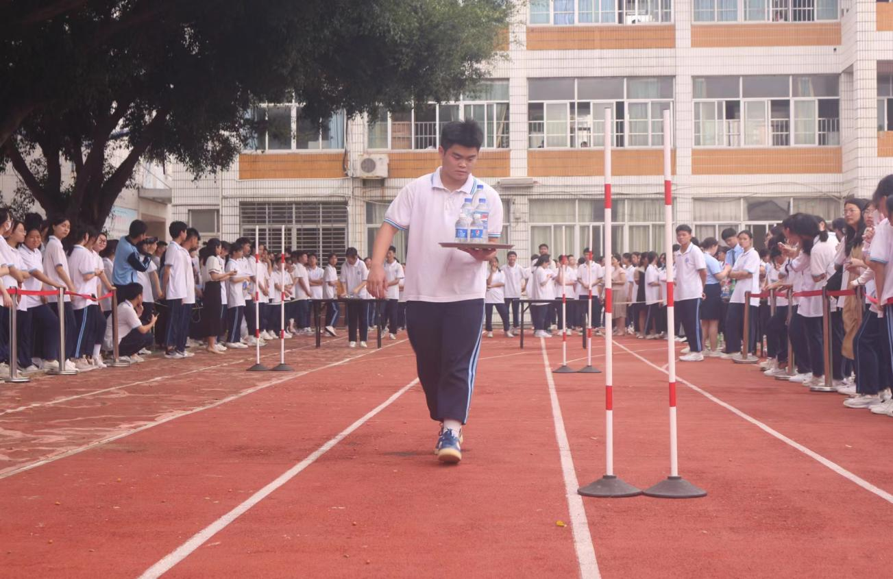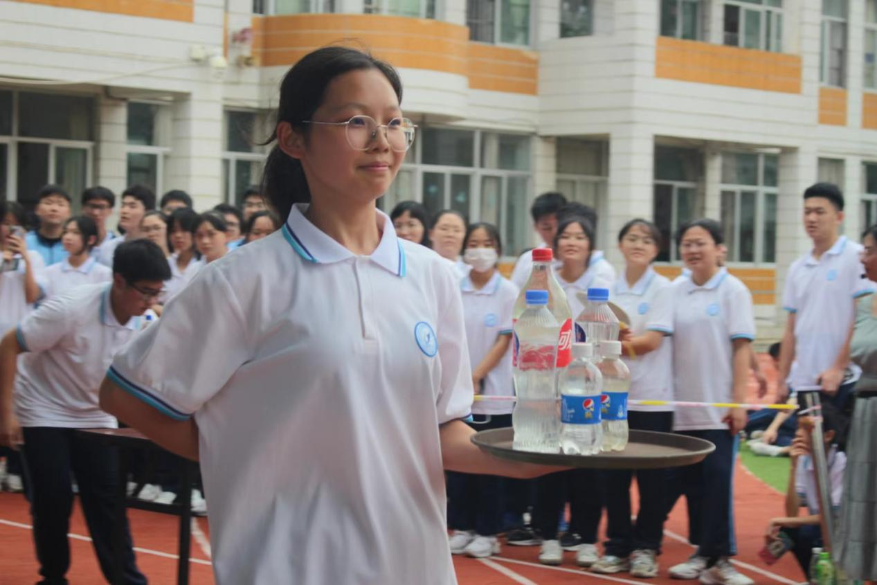 装托、理盘、起托、行走、落托,选手们力求又快又稳地完成这场接力赛,两旁的观众为他们加油鼓劲。场上的选手拼尽全力,将手中的胜利传给下一位同学;场外的观众加油呐喊,这是一场双向奔赴,也让全体同学体会到了团结拼搏的可贵性。