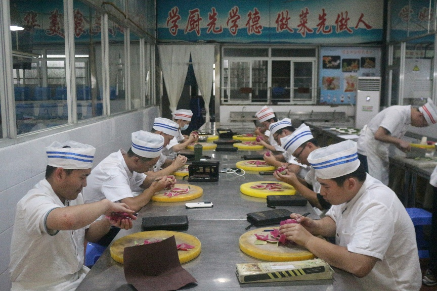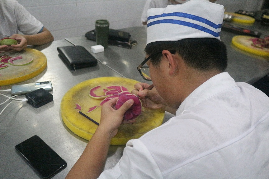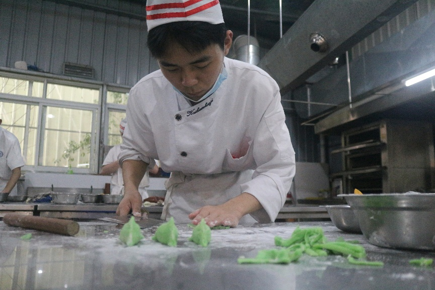 选手手中的刀飞快地挥舞,只为做出一道佳肴,手中的调味料,调出不一样的滋味,此次热菜比赛重点考核同学们菜品制作过程中刀工、加工、火候等厨艺基本功。