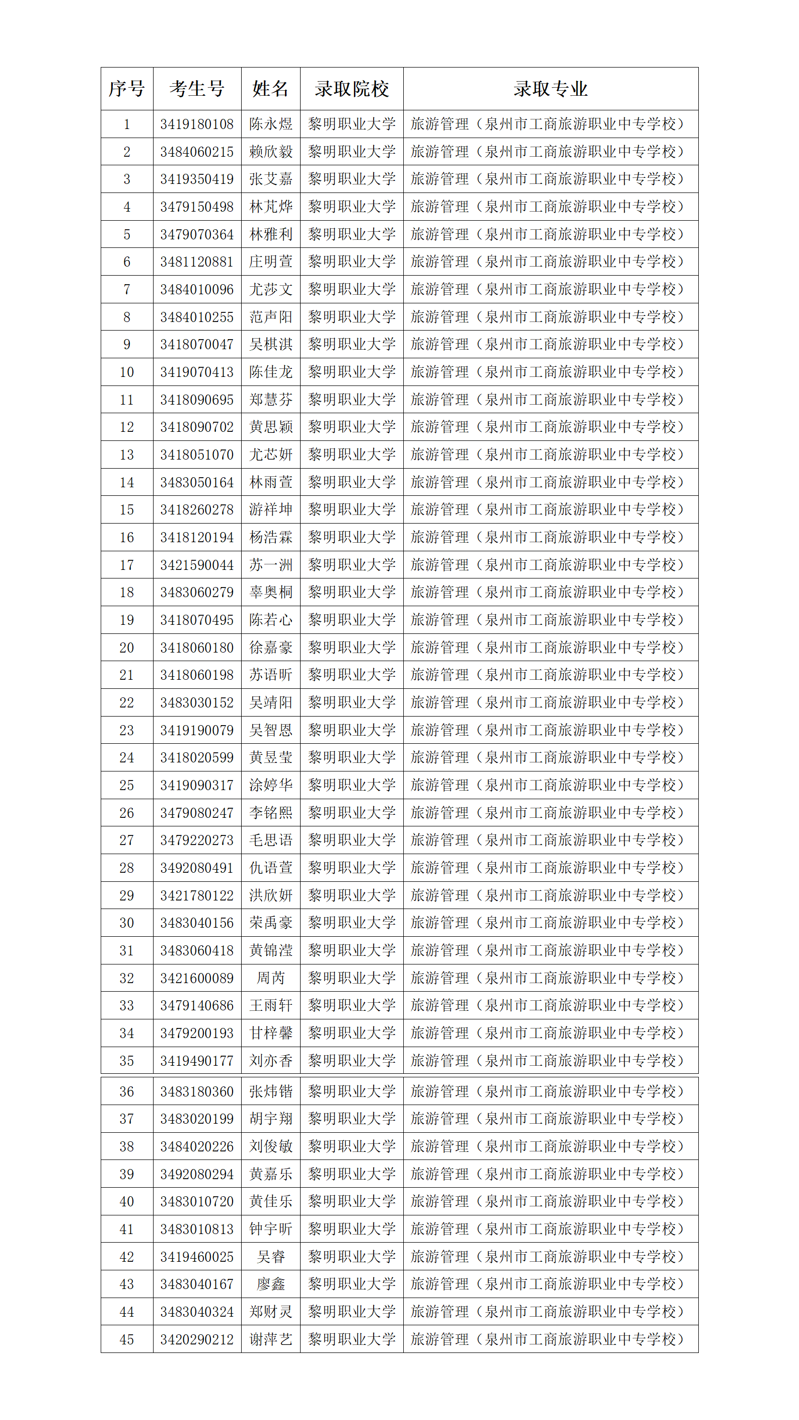 2 | 旅游服务与管理 | 黎明职业大学 | 7月25日:8:30--11:30 |