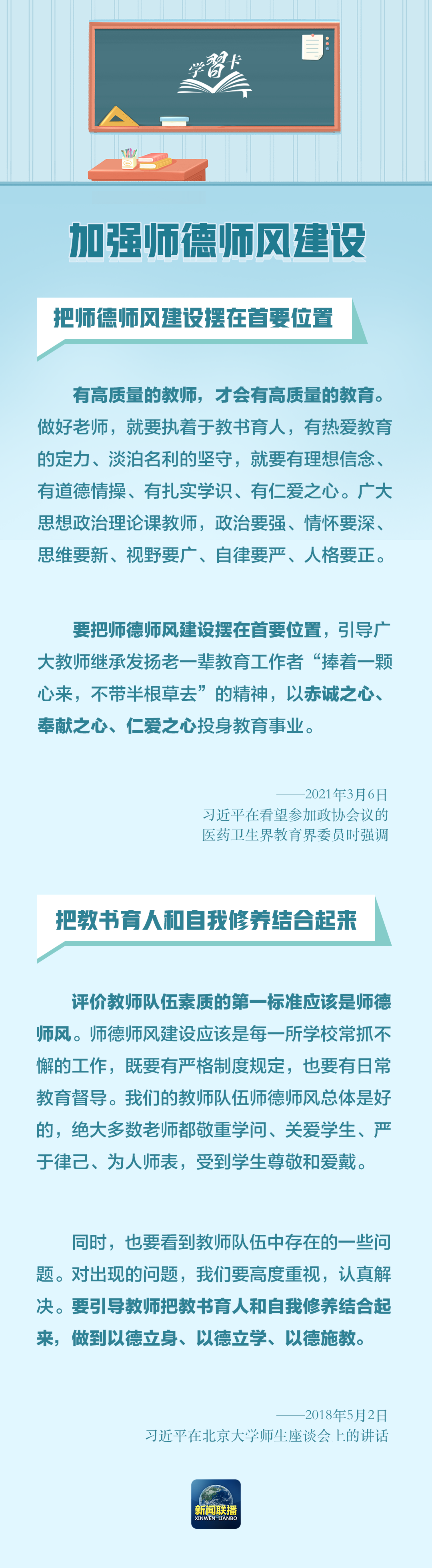 教师要成为大先生 百年大计,教育为本。教育大计,教师为本。党的十八大以来,以习近平同志为核心的党中央高度重视教师队伍建设问题,在不同场合多次强调教师工作的重要意义。在我国第四十个教师节到来之际,让我们重温总书记的话语,一起学习。发布时间:2024年09月09日 10:22 来源:“新闻联播”微信公众号 编辑:许建文分享打印