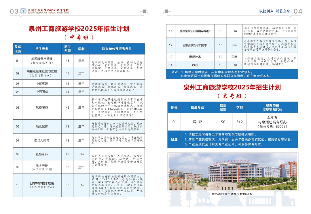 泉州工商旅游学校2025年招生计划