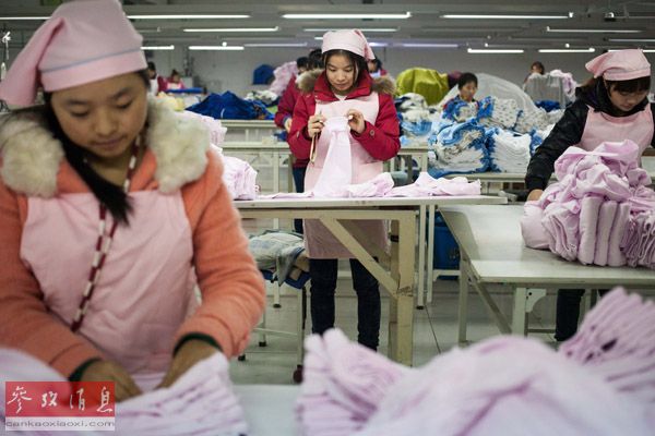 资料图片:在山东科技职业学院,纺织服装系学生对服装产品进行检验。新华社记者 白雪骐 摄