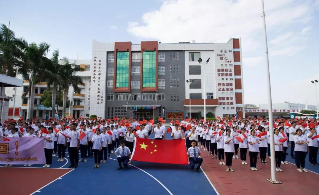 骆校长在讲话中说:今天,我们在这里举行隆重的升国旗仪式,以实际行动庆祝我们伟大祖国的生日。新中国成立70周年来,政治文明、经济发展、国家强盛,人民安居乐业。我们坚信,在伟大的光荣的正确的中国共产党的坚强领导下,中华民族伟大复兴的梦想一定能够实现!