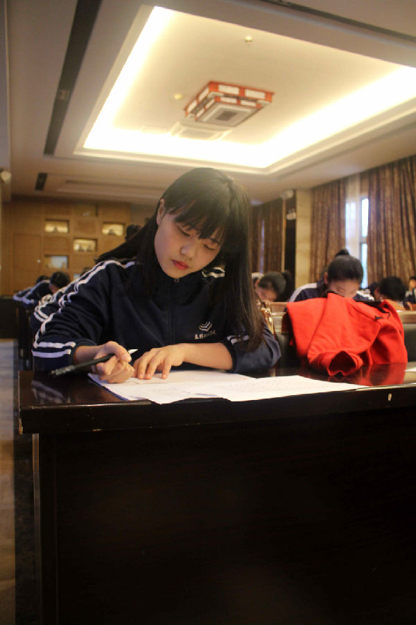 此次参赛的选手都是进过了班级比赛比赛基础上选拔出来的优秀选手。在整个比赛过程中,同学们尽其所能地展示自身书法的才能。一个个美观的汉字从学生们的笔尖流淌出来,犹如串串美妙的音符,谱成了汉字书写的美妙乐曲。整个比赛活动井然有序,赛场气氛紧张热烈。
