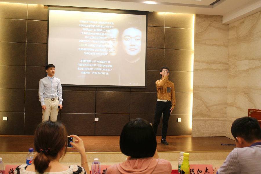 本次大赛通过各年级海选、复赛和半决赛的层层选拔,最终共有16名选手进入本次总决赛,5位老师应邀担任了本次大赛的评委。决赛竞争激烈,人才辈出,大显身手。前来加油呐喊的亲友团也不甘落后,场上歌声余音绕梁,场下的掌声不绝于耳。气势磅礴的《父亲》,温暖贴心的《雨爱》,柔情似水的《身骑白马》……一首首悦耳动人的歌曲如一幅幅的水彩画缓缓铺呈在观众们的面前,让观众如身临其境般步入歌曲中唯美的场景,评委老师也为参赛选手出色的演出表示肯定并且用心地为每一位选手作出了精彩的点评。