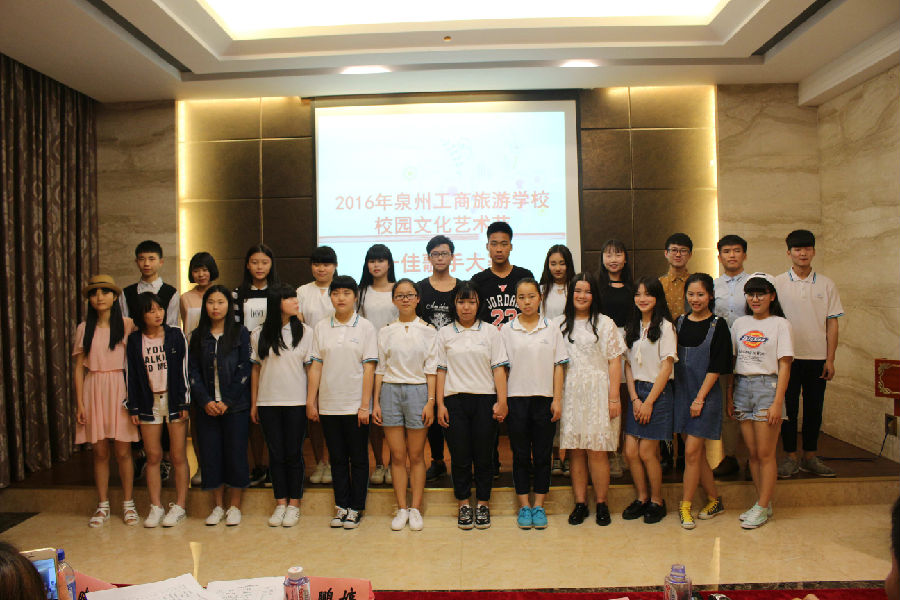 经过两小时的激烈竞争以及评委老师积极的讨论,最终评选出本次校园十佳歌手,他们分别是:15级旅游1班孙丹丹、14级建筑班袁永伟与张前进组合、14级学前大专班陈佳璐与陈珍妮组合、15级学前2班洪琳、15级汽修1班陈亦岑、14级学前大专班蔡晓雯与林婉婷组合、15级会计班曾义、15级旅游1班陈斌、15级旅游2班徐玉莹、14级学前中专班饶海燕与王美丹组合。竞争是激烈的,结果也有人欢喜有人忧,但比赛的过程却是快乐的,每位选手都站上了这个展现自我的大舞台,呈现了最完美的自己。比赛结束后,所有参赛选手与主持人一起在舞台上合影留念,本次校园十佳歌手比赛圆满成功!