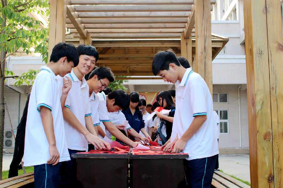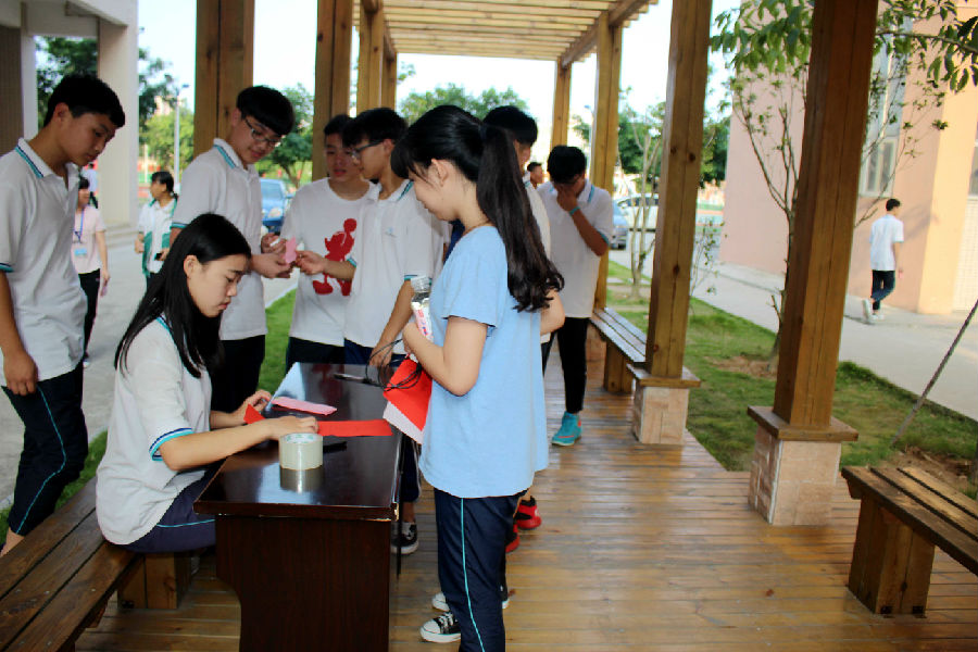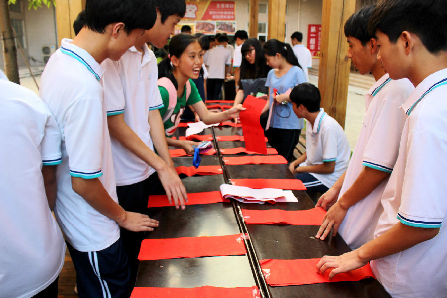 活动现场学生会准备了100多条谜语、经史辞赋、现代知识等,内容包罗万象。闻讯而来的老师,学生们三五成群,结伴猜谜,有的自己冥思苦想,有的和同伴商量。猜中的答题者还可以得到精美的粽子,每个人脸上都堆满了笑容。