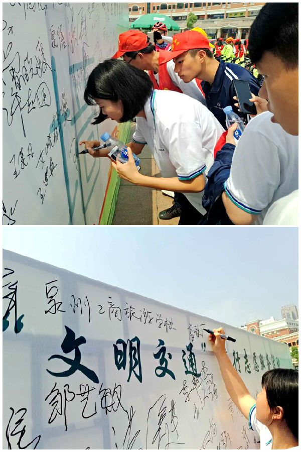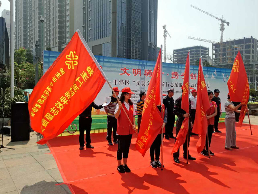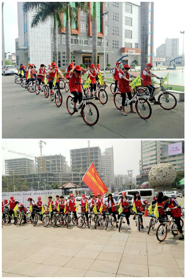 为了践行“八不”行为,推行低碳、环保、绿色的出行方式,引导广大市民文明使用共享单车,营造“文明出行•携手创卫”的浓厚氛围。2017年4月8日,学校团委组织50名青年志愿者参加由区委文明办、区城市执法局、丰泽交警大队等单位联合在丰泽广场举办的“文明骑行•携手创卫”——丰泽区“文明交通”骑行志愿服务活动。