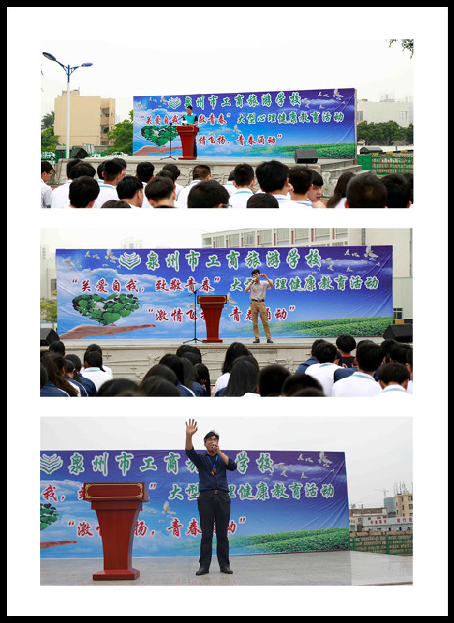 2017年5月4日下午,泉州工商旅游学校在全校学生中开展“关爱自我,致敬青春”大型心理健康教育活动启动仪式,仪式由分管德育工作的副校长林文亮主持。