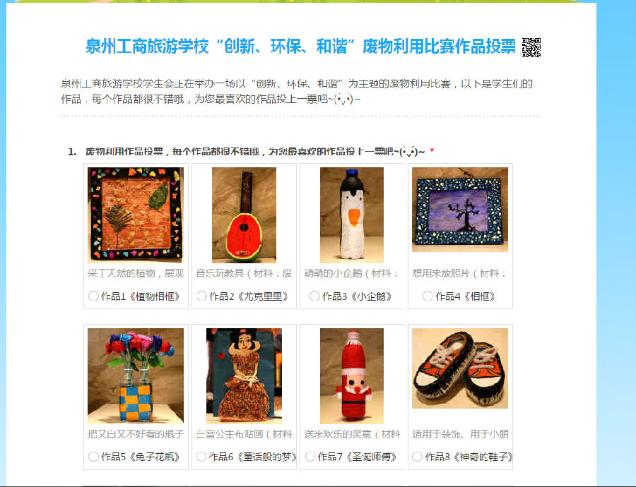 此次比赛的参赛作品形式多样,有科技小制作、艺术品和实用品等。在手工制作比赛过程中,同学们积极寻找身边的废旧物品,网上查阅相关资料,利用废旧纸杯、一次性筷子、废弃灯泡、包装盒、易拉罐等各种各样废旧材料,发挥自己的奇思妙想,在老师的指导帮助与同学们的共同努力下制作了二十多件精致的手工作品。如相框、暖心之家、风铃等等。这些作品既体现变废为宝的创意,又具有观赏、宣传和再利用的价值。本次比赛采用网上公开投票形式,全校师生们都可以为自己喜欢的作品投上一票。最终,15级学前1班彭锦获得一等奖,16级学前3班刘怡婷,16级学前3班高俊玲获得二等奖,15级旅游2班吴新茹、林幼贞,16级学前2班李赐英、黄敏,14级学前大专班谢佳梅获得三等奖。