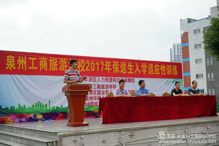 骆志忠校长在欢迎词中提到:欢迎保送生们成为泉州工商旅游学校的一员,鼓励同学们要树立远大的志向,要有“天生我才必有用”和“三百六十行,行行出状元”的信心,学好一门技艺,精通一门技艺,做到德技双馨,为今后就业打下良好的基础。在保送生期间,同学们要尽快转变角色,适应新环境;严于律己,陶冶情操;严格遵守纪律,服从教官的指挥。全体教职工要上下齐心协力,勇挑重担,加强沟通合作交流,深入学生中,关爱每一位学生,让学生尽快适应职专生活。