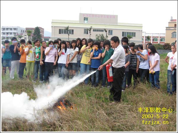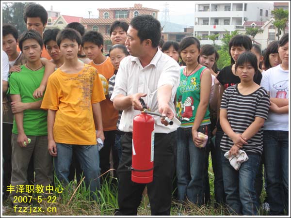 2007年5月21日下午丰泽区职业技术教育中心、成人中专师生300余人,根据区委、区政府关于应急管理工作的要求,结合学校自身的实际,从维护全体师生生命安全,维护正常教育教学秩序出发,在霞美社区有关领导的配合下,联合霞美社区的消防队员,组织学校全体师生进行了一场别开生面的防火、抗震演练,演练的主题是“增强防火、抗震意识、提高自救能力”。