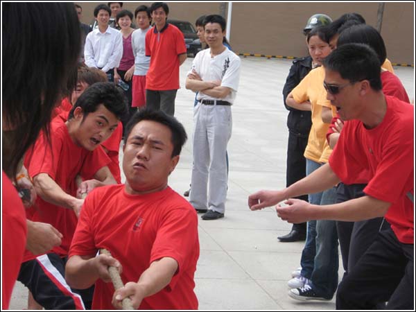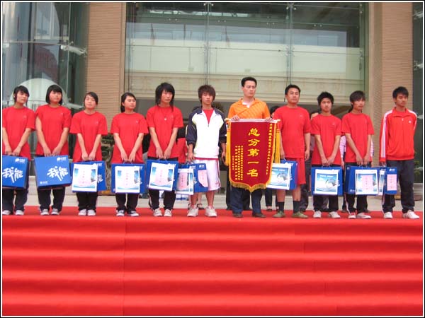 首先举行的是袋鼠跳我队因一个微小失误屈居第二名,在接下来的两项六百米接力和一分钟跳绳比赛中,我校队员发挥良好轻松的拿下这两项的冠军,并把有力竞争对手虎都服饰公司远远的甩在身后,在最后一项拔河比赛中我校运动员虽然体力不支,但以顽强拼搏的精神,积极应对坚持到了第二轮,最后我们以90分的绝对优势取得了团体第一名。