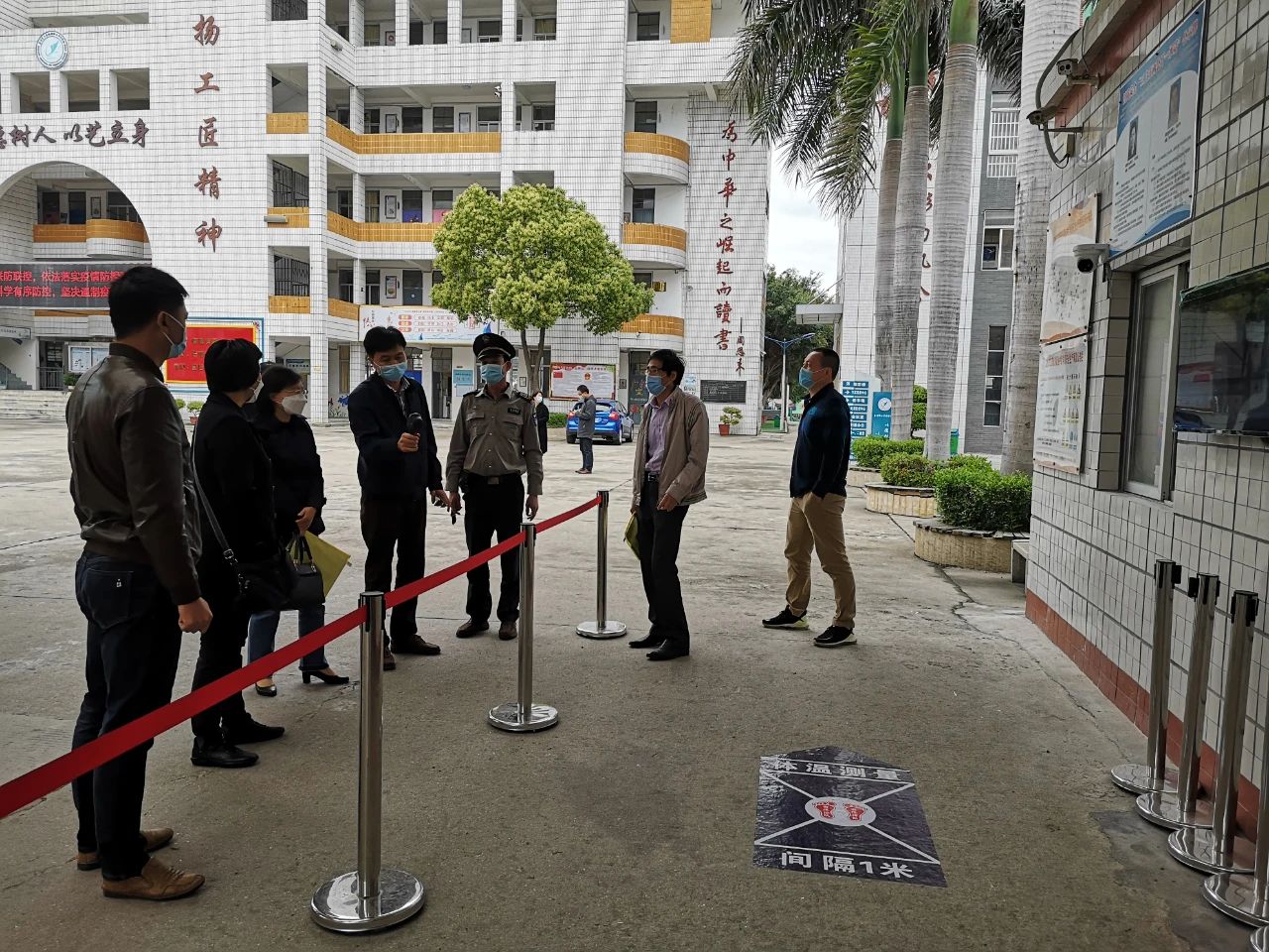 泉州市疫情防控专项督导组在泉州市教育局中教科宋永红主任的带领下莅临我校督导疫情防控及三年级返校复学工作。丰泽区教育局副局长郑德胜等陪同检查。在检查中,骆志忠校长汇报了师生健康管理、防疫物资储备、线上教学开展、环境卫生防疫、学生返校安排以及开学准备工作等情况。检查组仔细查看出入校园管理制度、入校体温检测登记等各项准备工作,实地查看了留观室、医务室、物资仓库等防疫设施、防控物资准备情况,详细了解我校学生返学的校园重点防控场所管理、应急处置方案等相关情况,查阅了学校疫情防控的工作档案及开学工作方案等台账。