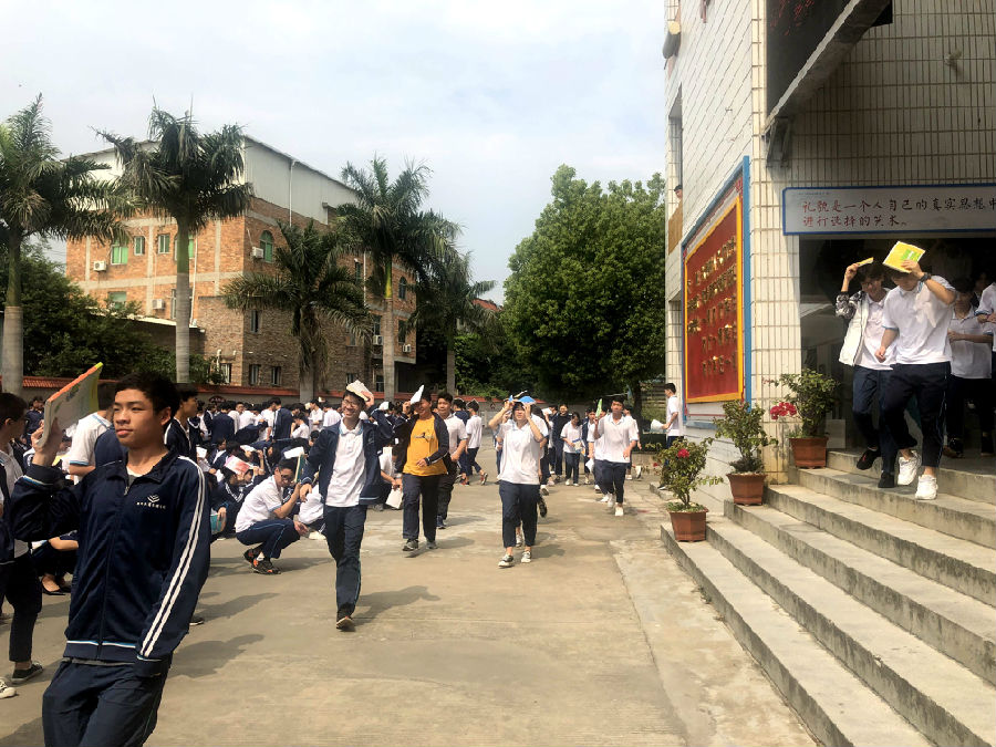 月30日上午9:40,全校1600多名师生举行了本月的 “地震疏散(逃生)演练”活动。