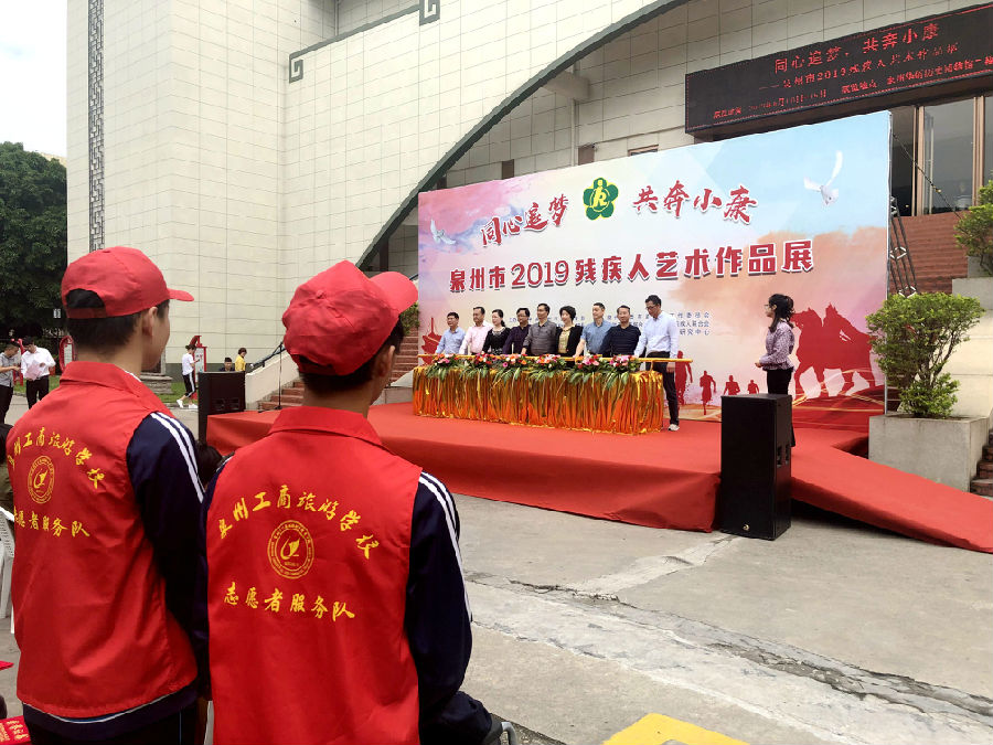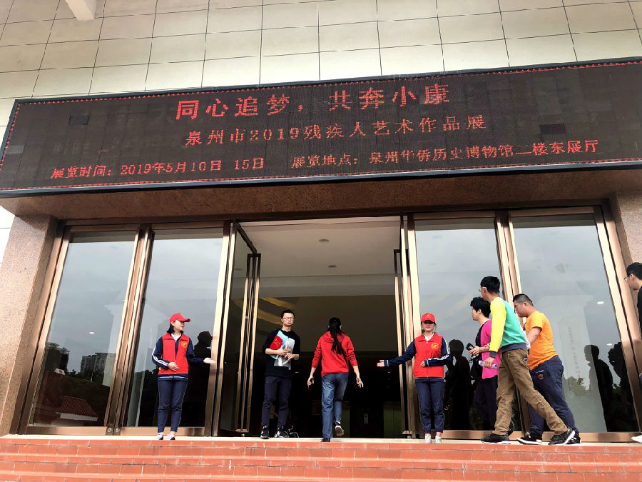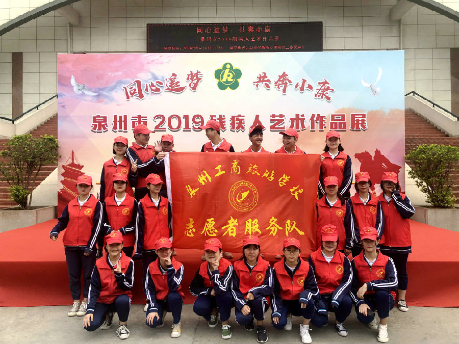 2019年5月10日,“同心追梦•共奔小康”泉州市2019年残疾人艺术作品展在泉州华侨历史博物馆举行,泉州工商旅游学校团委组织20多名志愿者们
