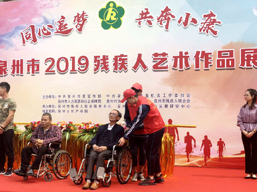 志愿者于泉州市2019年残疾人艺术作品展志愿服务