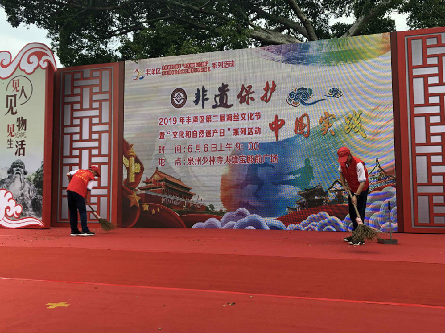 6月6日早上,丰泽区第二届海丝文化节暨“文化和自然遗产日”系列活动开幕式如期举行。泉州工商旅游学校的师生们积极承担了开幕式的志愿者服务及礼仪工作。